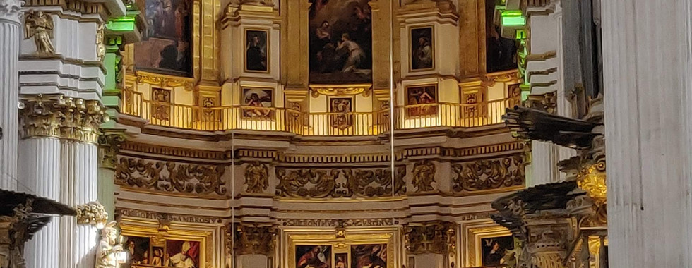 The next morning, I once again feasted on a giant breakfast. We were going to be going on a walking tour of the city! Luckily, it wasn't raining on Sunday! First we visited Granada's ayuntamiento, or government, and then a place called Corral del Carbon, a 14th century alhóndiga, or a place where grain was stored, sold, or bought. After that, we walked through the Alcaicería, an Arabic style street market, to get to the cathedral and the royal chapel. The cathedral of Granada is the only one in Spain that isn't in a large plaza or square. There isn't a wide street surrounding it to separate it from the rest of the buildings nearby. We quickly visited inside, but didn't stay long because Mass was being held. We then walked around the building to the royal chapel, where the Catholic monarchs Ferdinand and Isabella are buried. We were unable to take photos inside, but I was able to see their tombs!